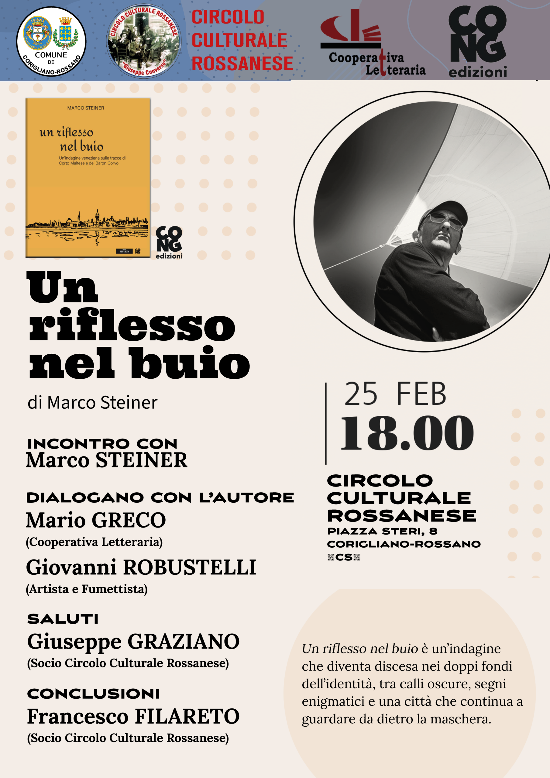 Marco Steiner firma un inedito noir presentato in occasione del Festival letterario Venice Noir in programma dal 14 al 16 novembre 2025, promosso dalla libreria Studium. Un appuntamento annuale per tutti gli appassionati del genere nella città che, con le sue atmosfere, ha ispirato tanti scrittori internazionali di gialli e non solo.