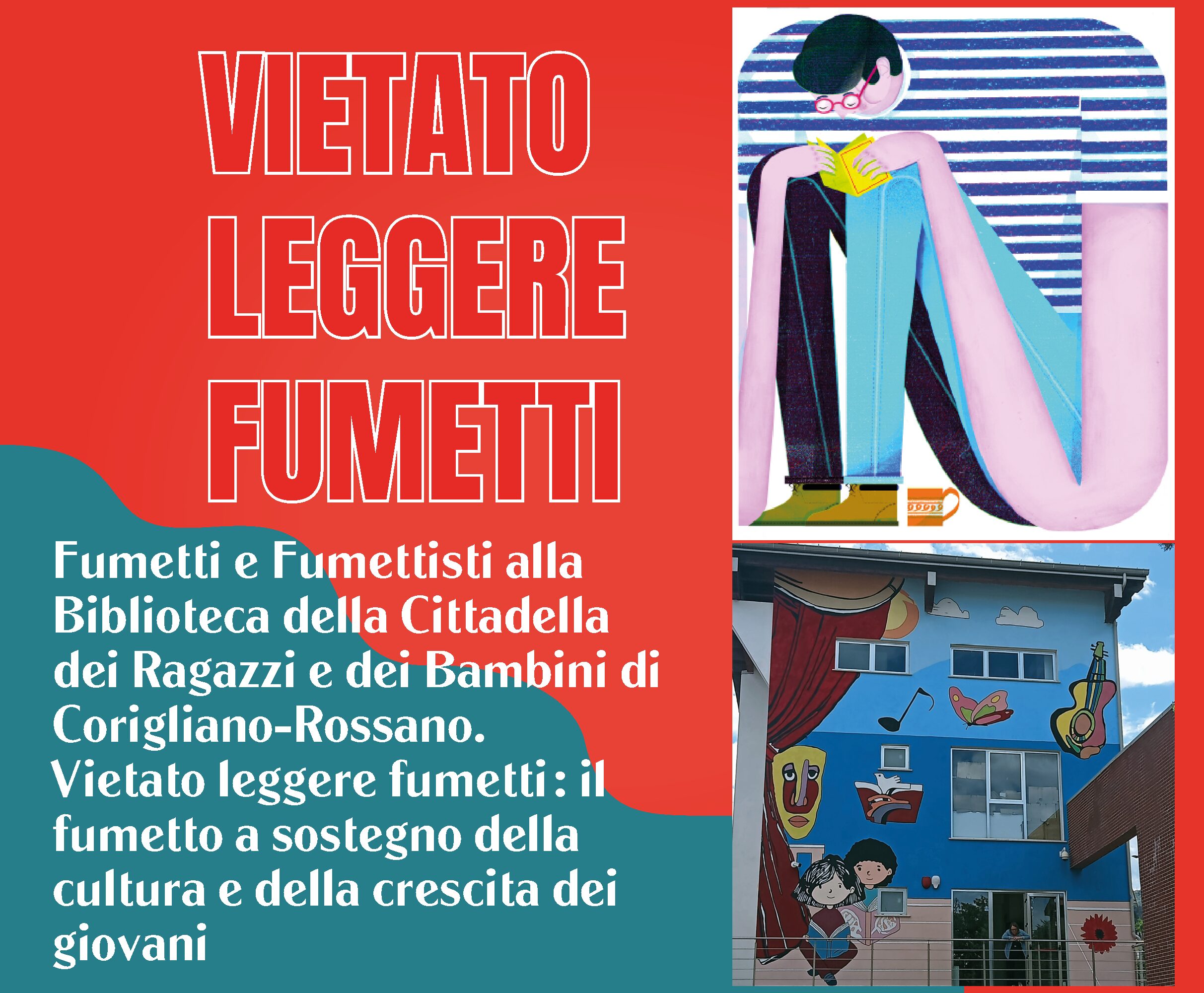 Dopo aver contribuito alla realizzazione del murale del celebre artista cileno Héctor “Mono” Carrasco, di circa 80 mq, realizzato sulla facciata della “Cittadella dei Bambini e dei Ragazzi”, situata nell’area urbana di Rossano, che racconta, con i simboli della vita dell’artista e i futuri temi della Cittadella (libri, teatro, musica), un luogo di aggregazione giovanile e sociale importantissimo per la comunità. Cooperativa Letteraria, in collaborazione con il Comune di Rossano e coinvolgendo realtà sociali del territorio e le scuole sta contribuendo alla realizzazione della Biblioteca dedicata al Fumetto, attraverso la selezione del catalogo e la promozione del linguaggio del fumetto e dei testi che man mano vanno ad arricchire la Biblioteca.